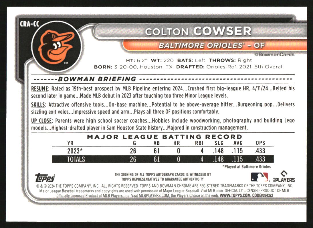 2024 Bowman Chrome Rookie Autographs Mega Box Mojo Colton Cowser RC Auto /150