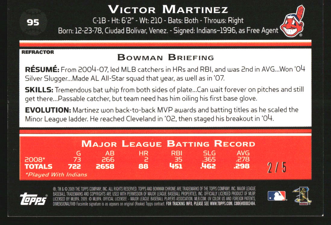 2009 Bowman Chrome Red Refractors #95 Victor Martinez /5