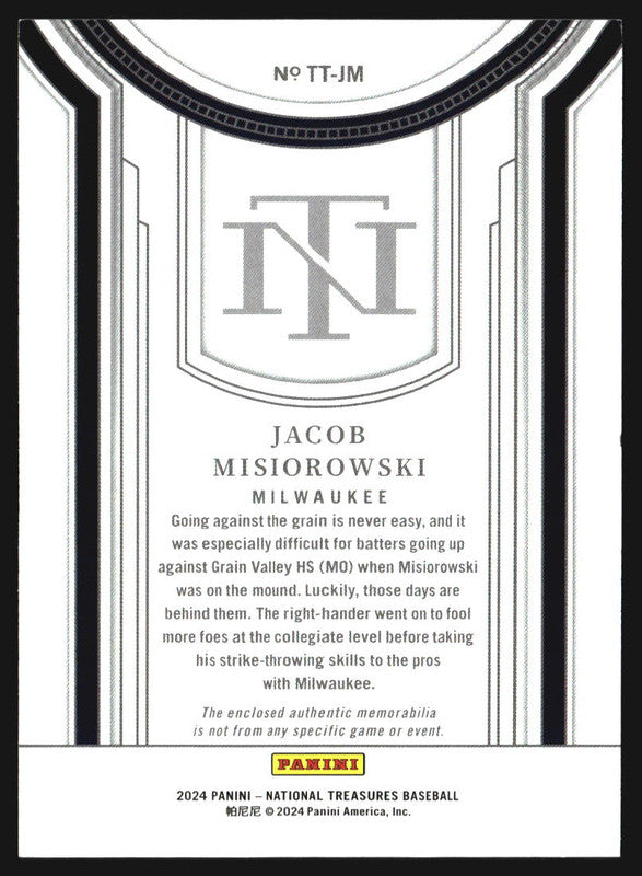 2024 Panini National Treasures Treasured Threads #TT-JM Jacob Misiorowski /99