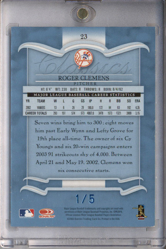 2003 Donruss Classics Significant Signatures #23 Roger Clemens Auto /5
