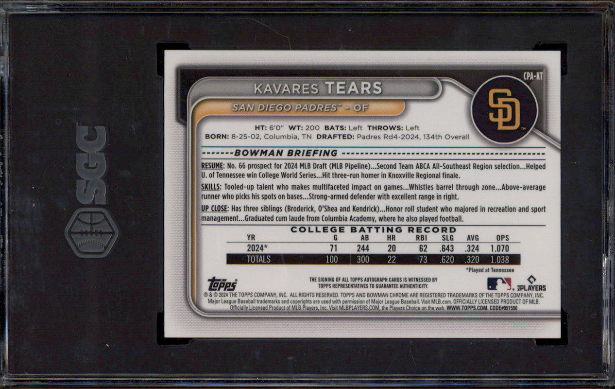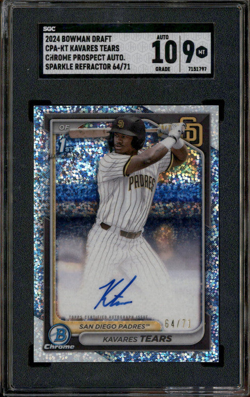 2024 Bowman Draft Chrome Auto Sparkle Refractor Kavares Tears RC /71 SGC 9