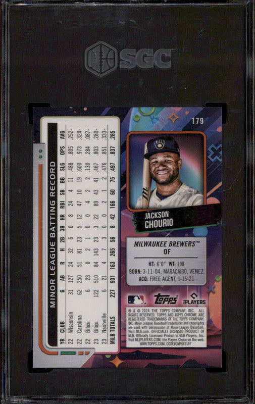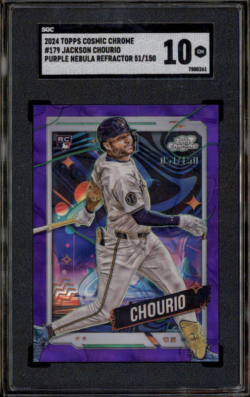 2024 Topps Cosmic Chrome Purple Nebula Refractor Jackson Chourio RC /150 SGC 10