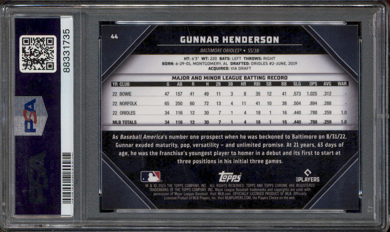 2023 Topps Chrome Black Variation #44 Gunnar Henderson RC PSA 10
