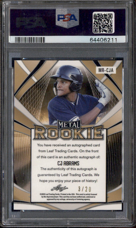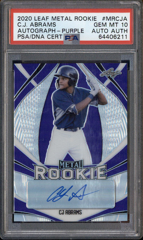 2020 Leaf Metal Rookie Auto Purple #MRCJA CJ Abrams RC /20 PSA 10