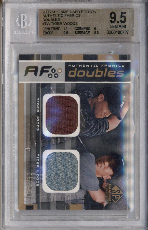 2003 SP Game Used Authentic Fabrics Double Tiger Woods /200 BGS 9.5