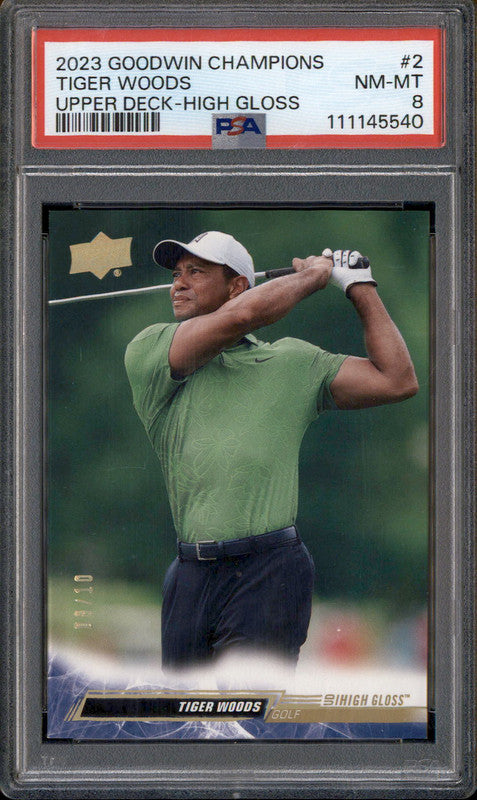 2023 Goodwin Champions Upper Deck High Gloss #2 Tiger Woods /10 PSA 8