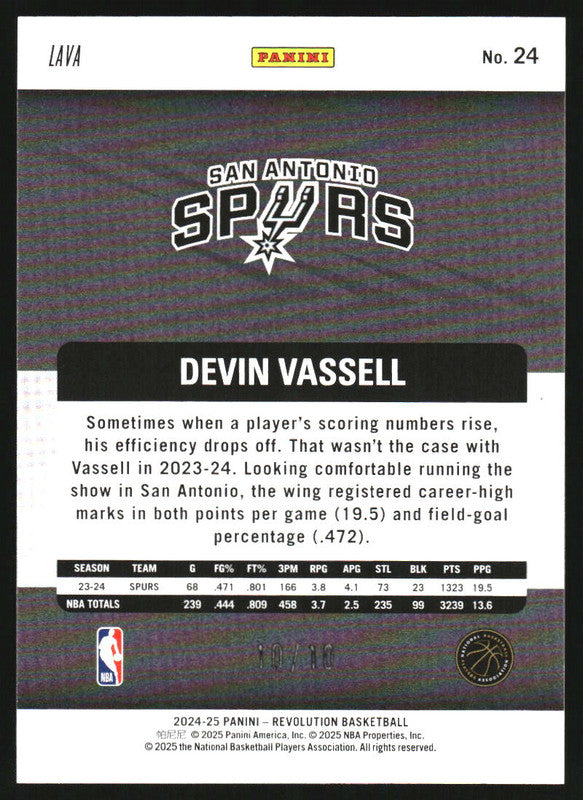 2024-25 Panini Revolution Lava #24 Devin Vassell /10