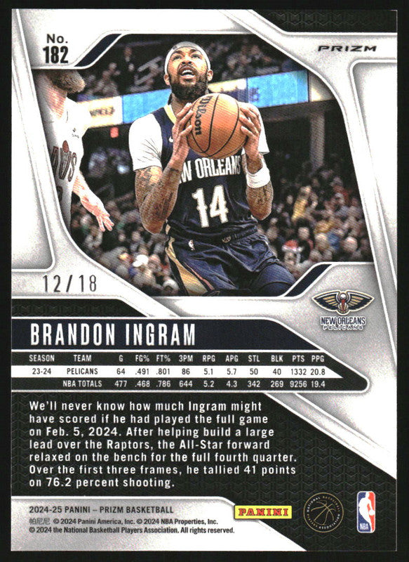 2024-25 Panini Prizm Lotus Flower Prizm #182 Brandon Ingram /18