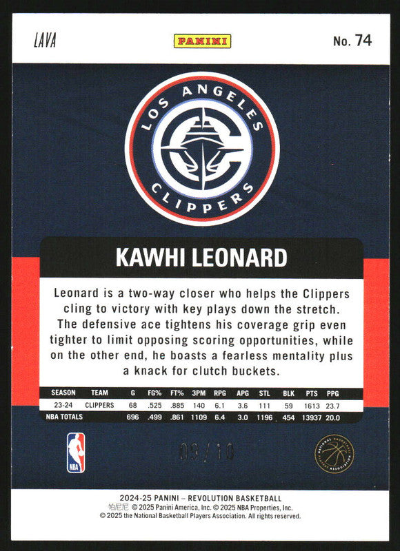 2024-25 Panini Revolution Lava #74 Kawhi Leonard /10