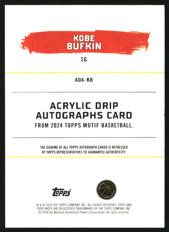 2023-24 Topps Motif Acrylic Drip Autographs Quin Gold Kobe Bufkin RC Auto 1/1