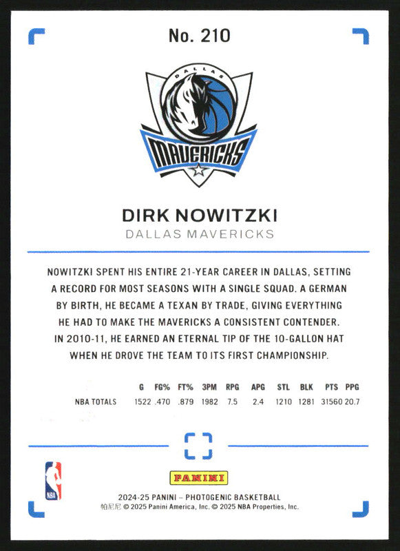 2024-25 Panini Photogenic Diamond #210 Dirk Nowitzki /75