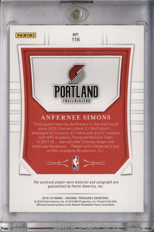 2018-19 Panini National Treasures #116 Anfernee Simons RC Auto /99