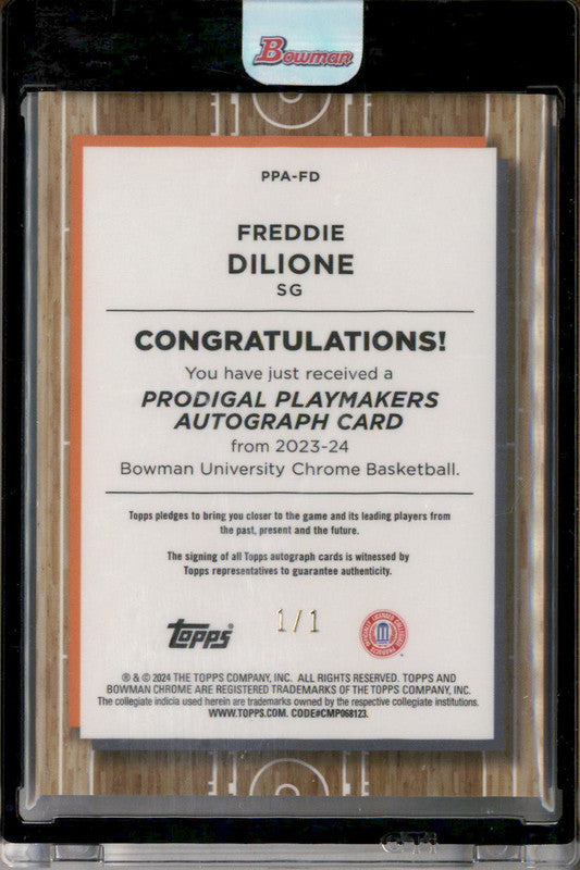 2023 Bowman University Prodigal Playmakers SuperFractor Freddie Dilione Auto 1/1