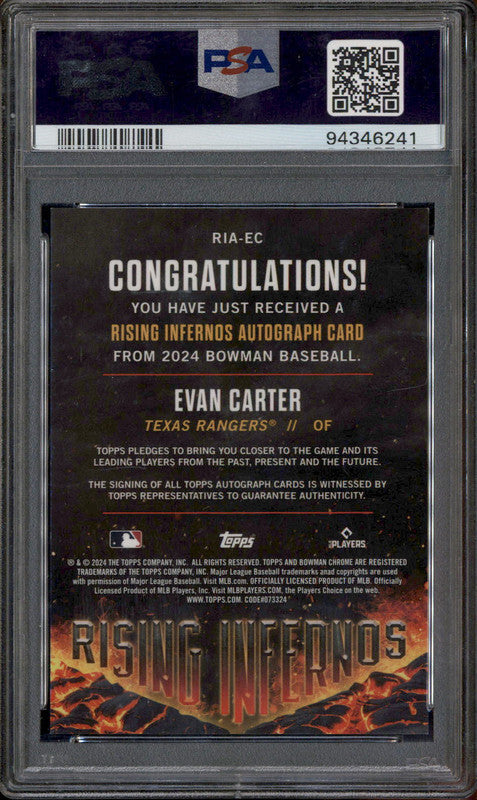 2024 Bowman Rising Infernos Autographs #RIAEC Evan Carter RC Auto /99 PSA 9