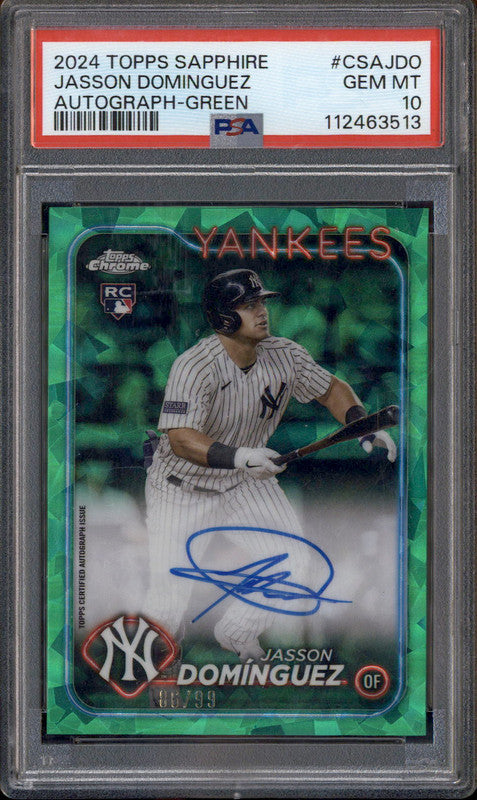 2024 Topps Chrome Sapphire Auto Green #CSAJDO Jasson Dominguez RC /99 PSA 10