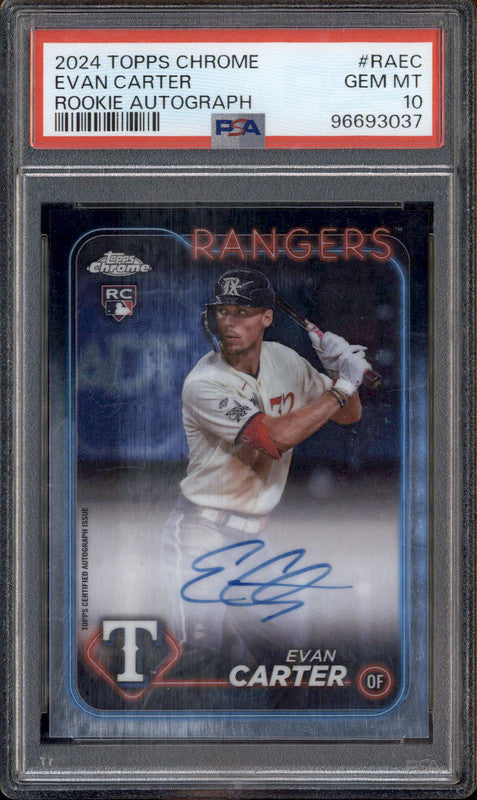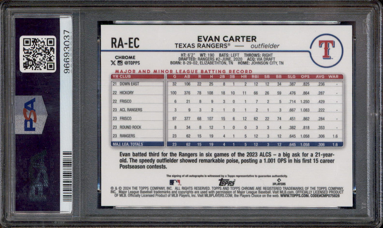 2024 Topps Chrome Rookie Autographs #RAEC Evan Carter RC Auto PSA 10