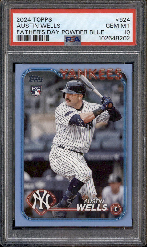 2024 Topps Father's Day Powder Blue #624 Austin Wells RC /50 PSA 10