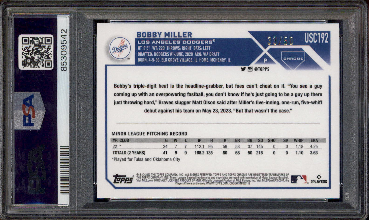2023 Topps Chrome Update Gold Refractor #USC192 Bobby Miller RC /50 PSA 10