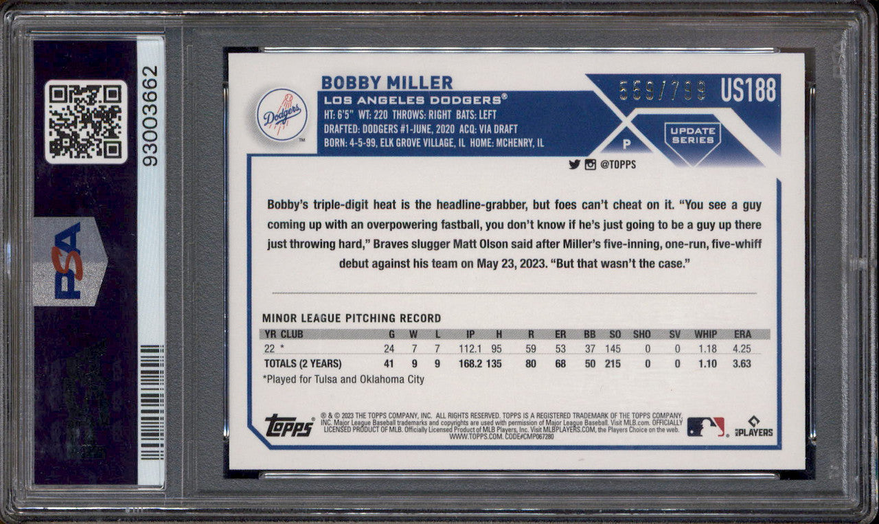 2023 Topps Update Purple Foil #US188 Bobby Miller RC /799 PSA 10