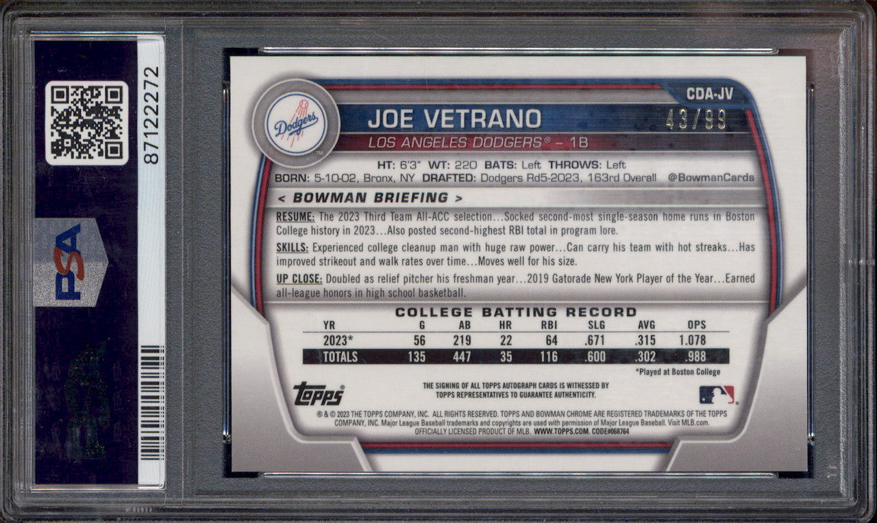 2023 Bowman Draft Chrome Prospect Auto Green Lava Joe Vetrano RC /99 PSA 10