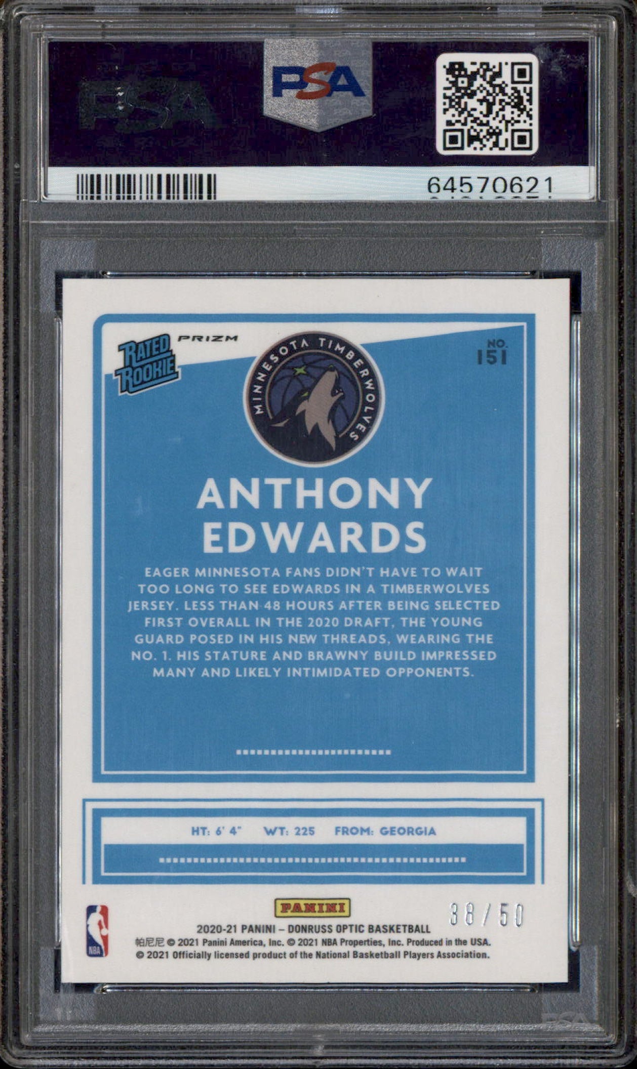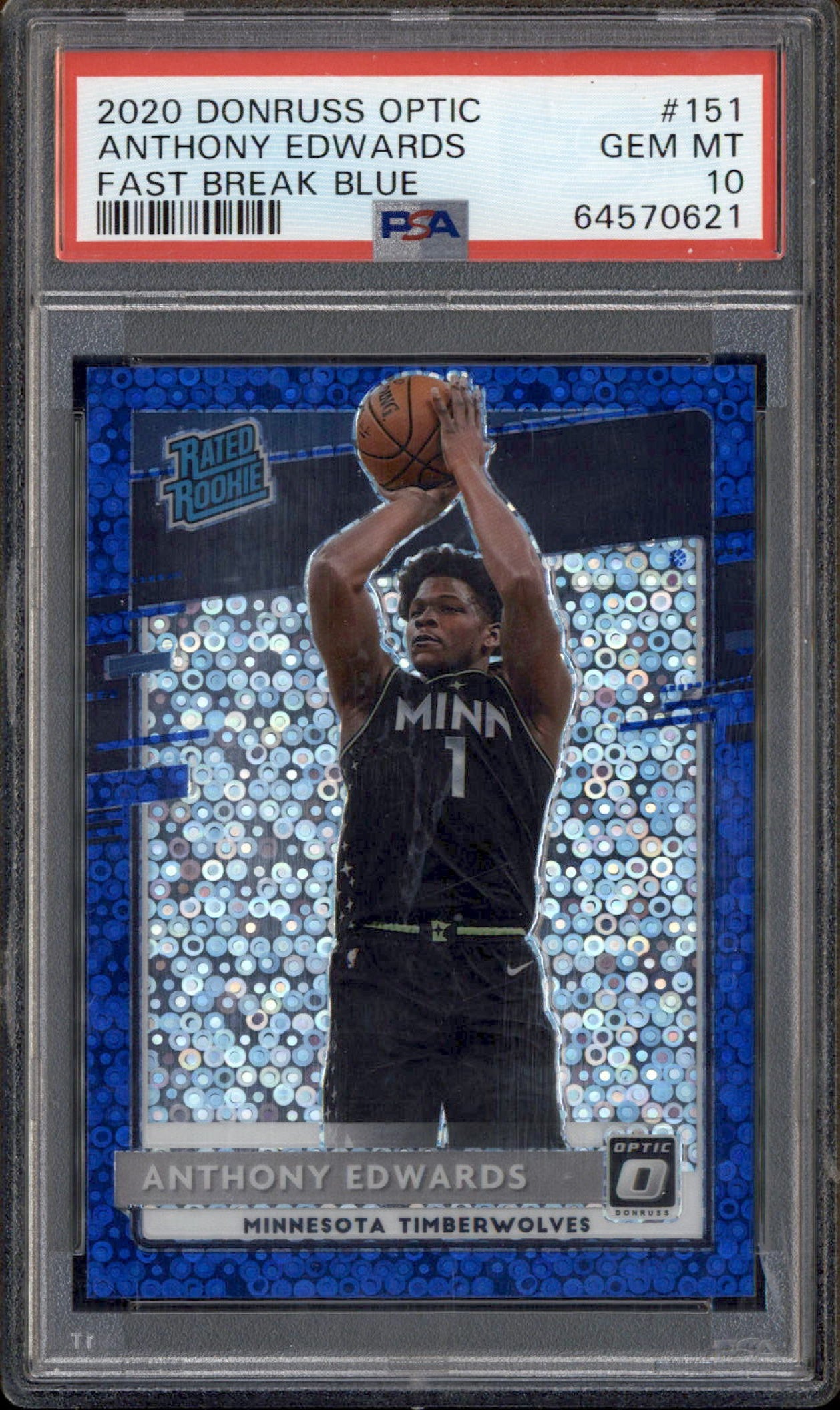 2020-21 Panini Donruss Optic Fast Break Blue #151 Anthony Edwards RC /50 PSA 10