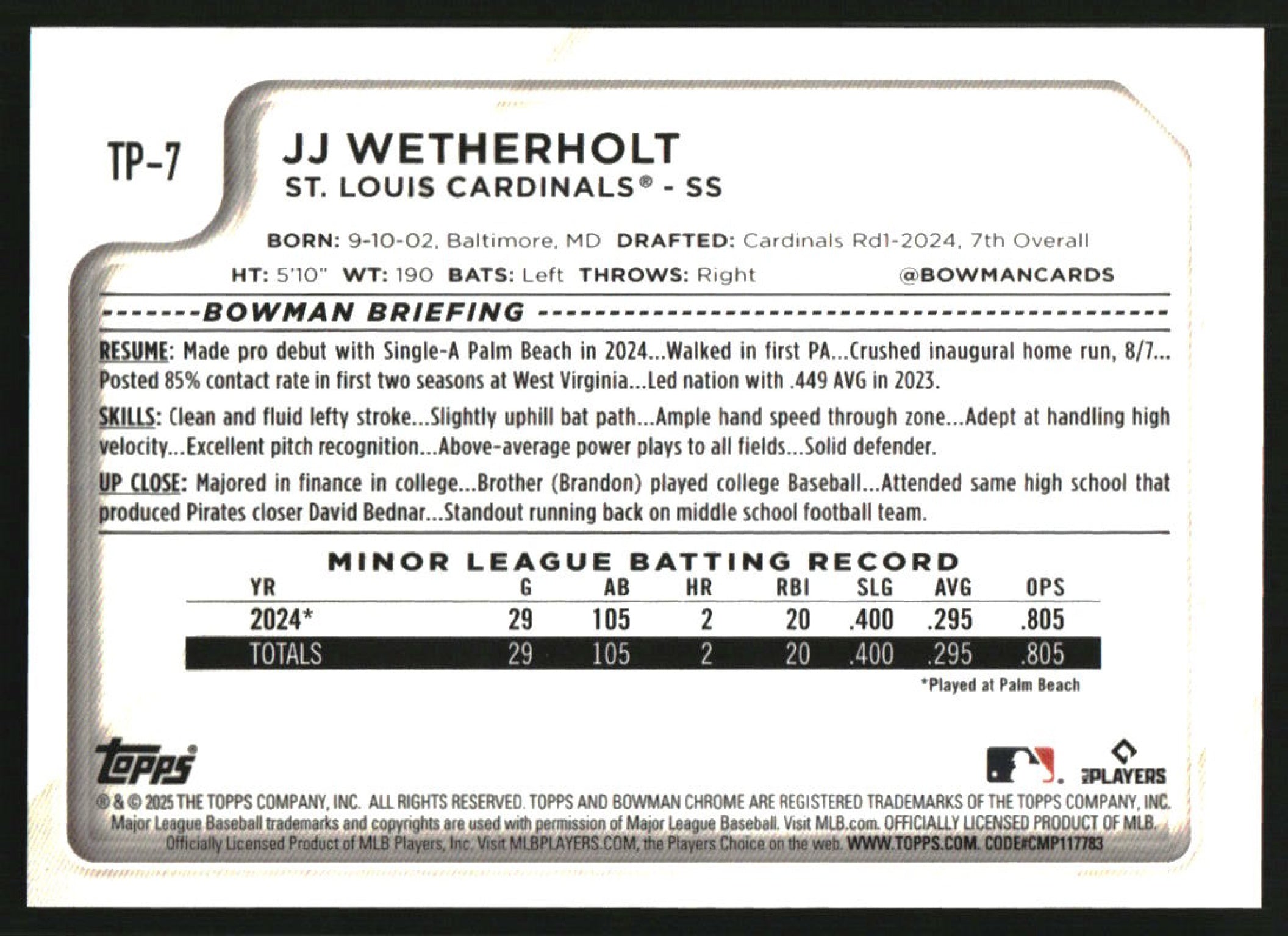 2025 Topps NSCC Silver Pack Wrapper MLB Bowman Gold #TP-7 JJ Wetherholt /50