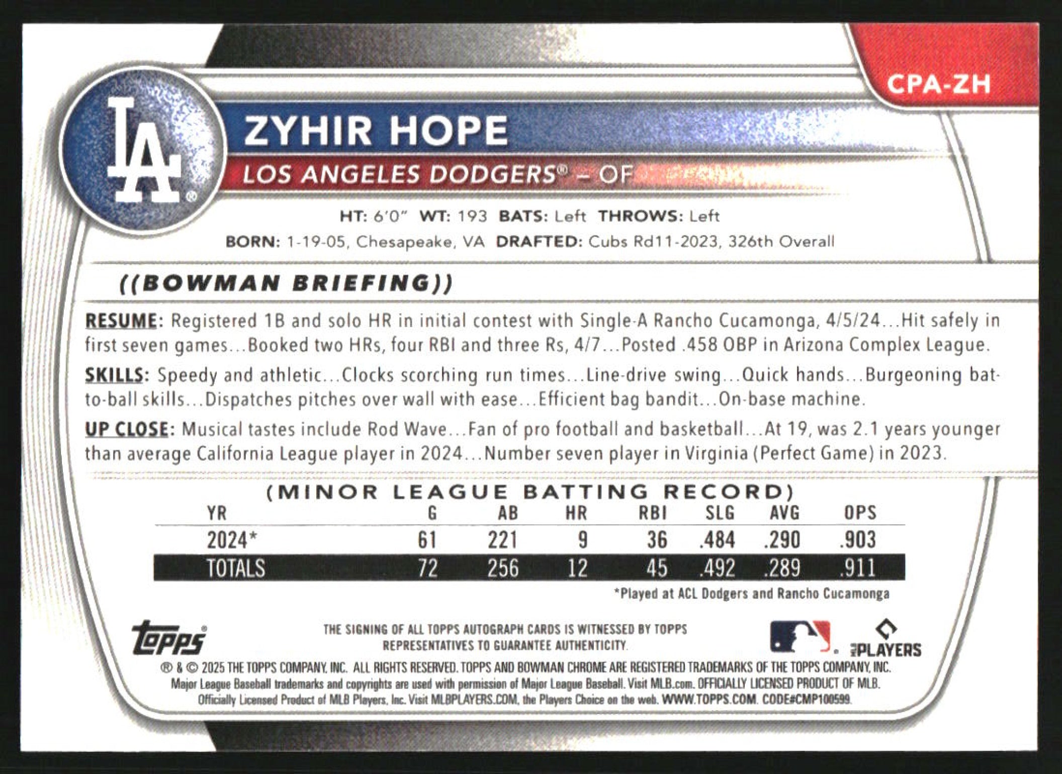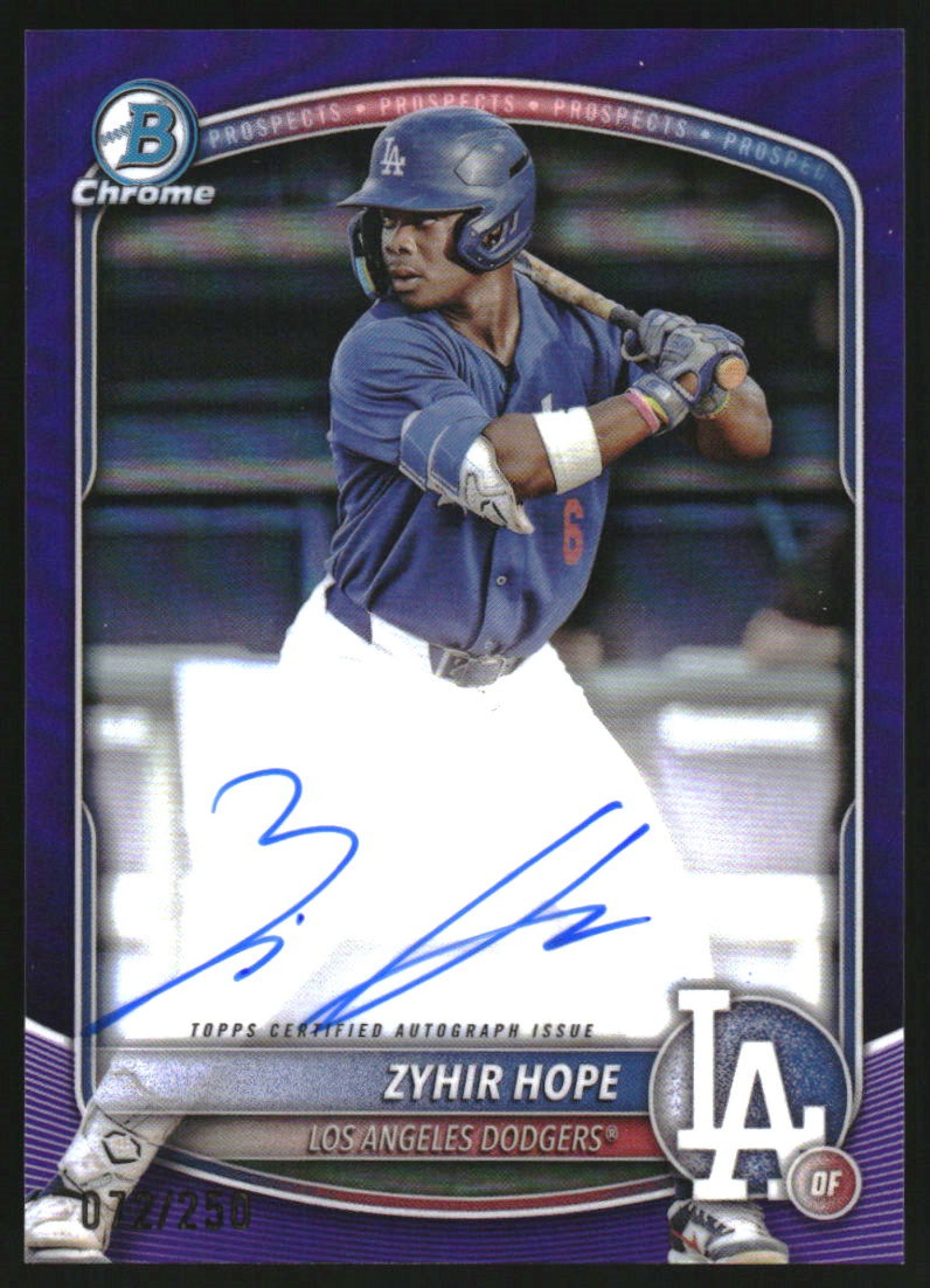 2025 Bowman Chrome Prospect Autographs Purple Refractor Zyhir Hope Auto /250