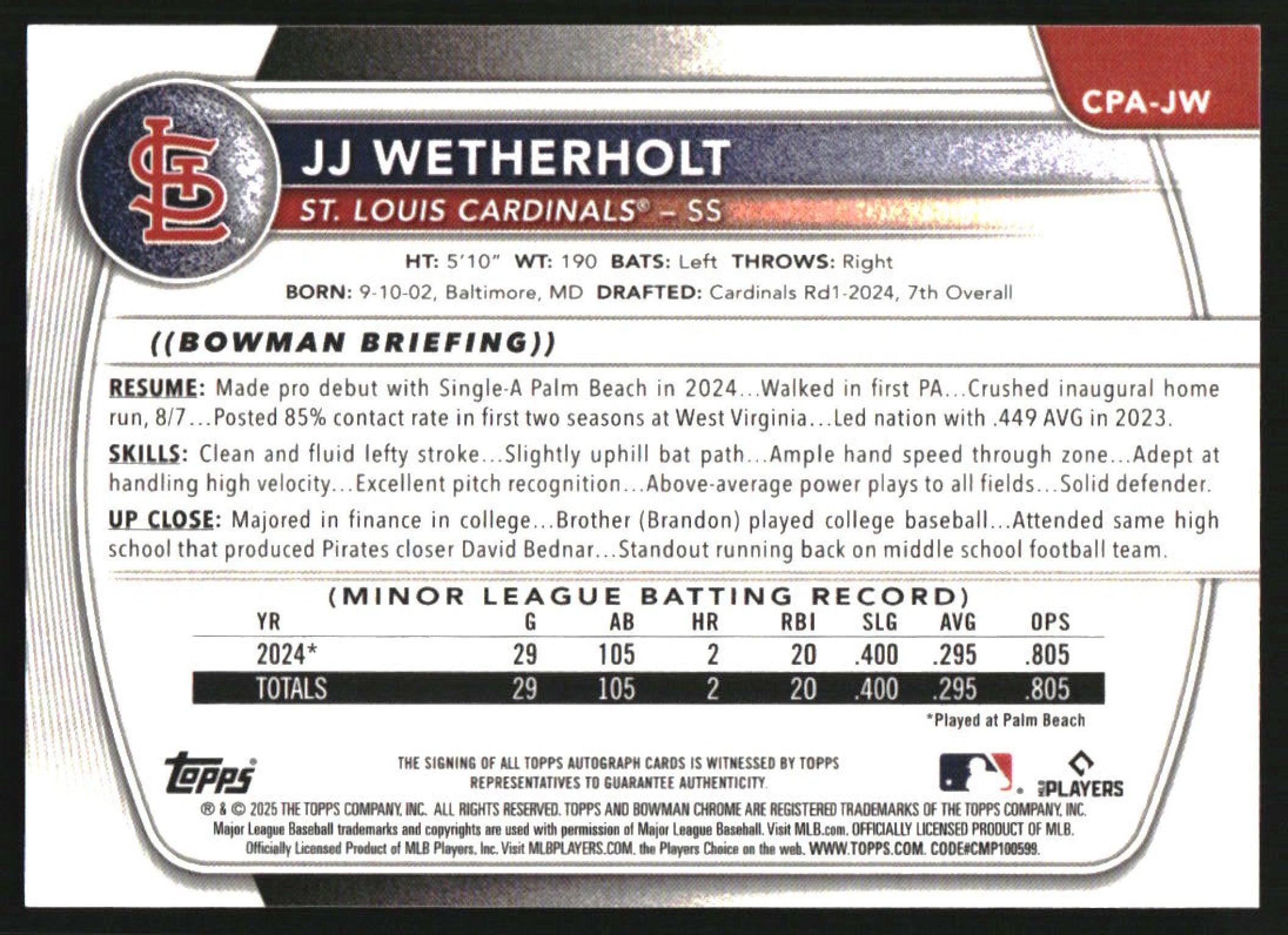 2025 Bowman Chrome Autographs #CPA-JW JJ Wetherholt RC Auto