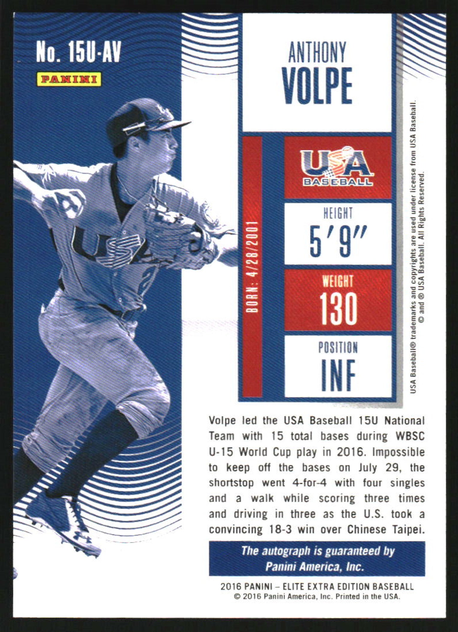 2016 Elite Extra Edition USA 15U National Team Playoff Anthony Volpe Auto /15