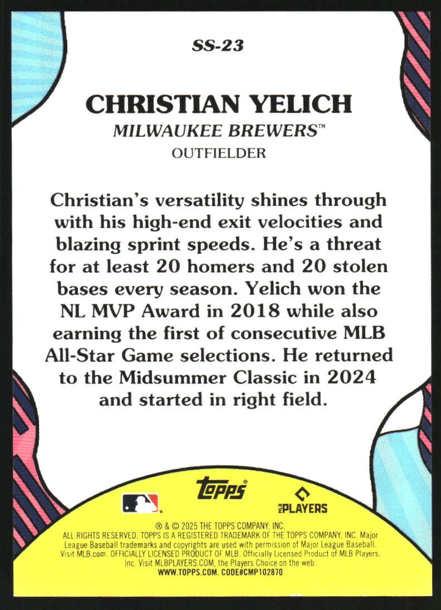 2025 Topps Summer Superstars Black Foil #SS-23 Christian Yelich /10