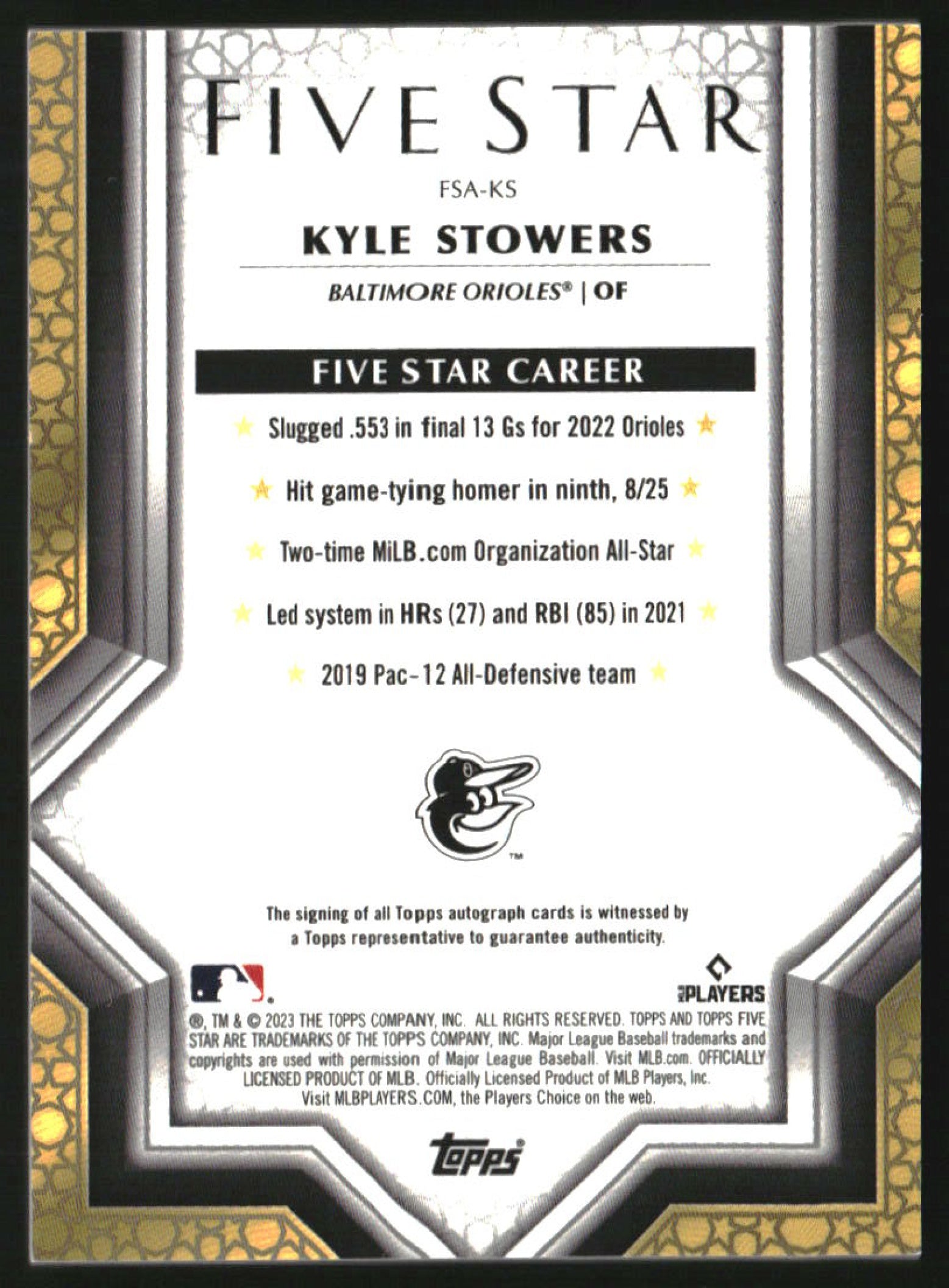 2023 Topps Five Star Purple #FSA-KS Kyle Stowers Autograph Auto /50