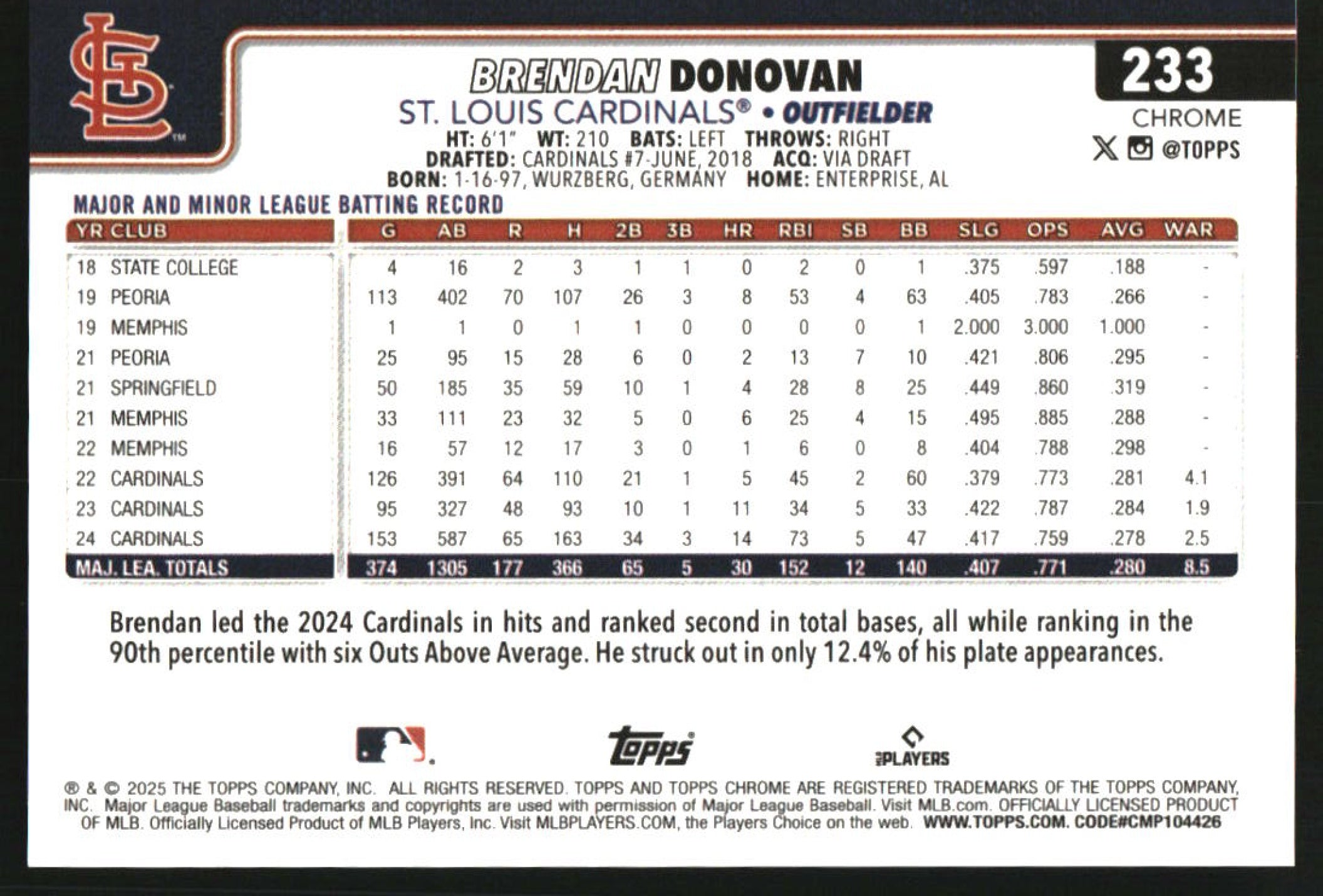 2025 Topps Chrome Orange Wave Refractor #233 Brendan Donovan /25