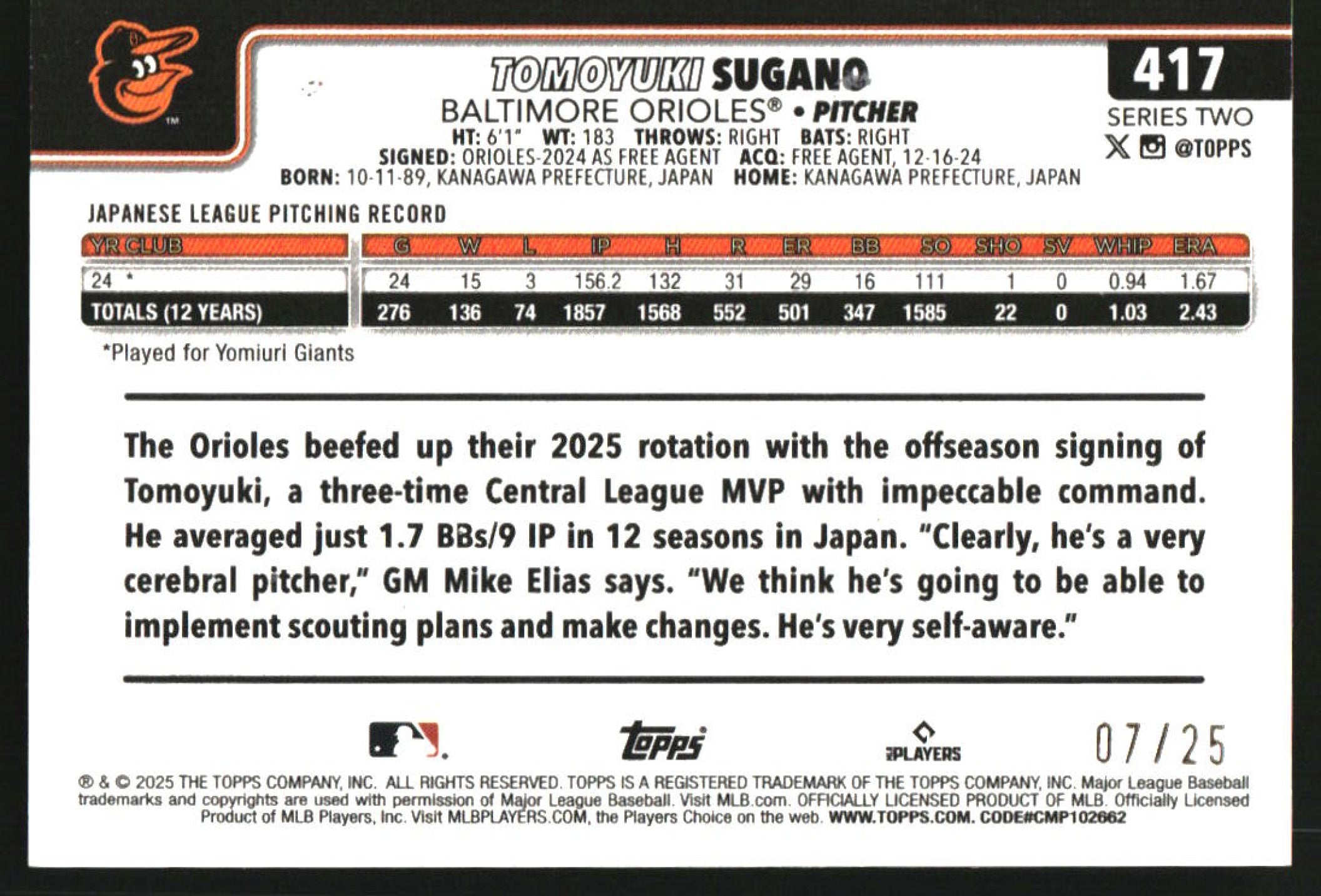 2025 Topps Wood #417 Tomoyuki Sugano RC /25