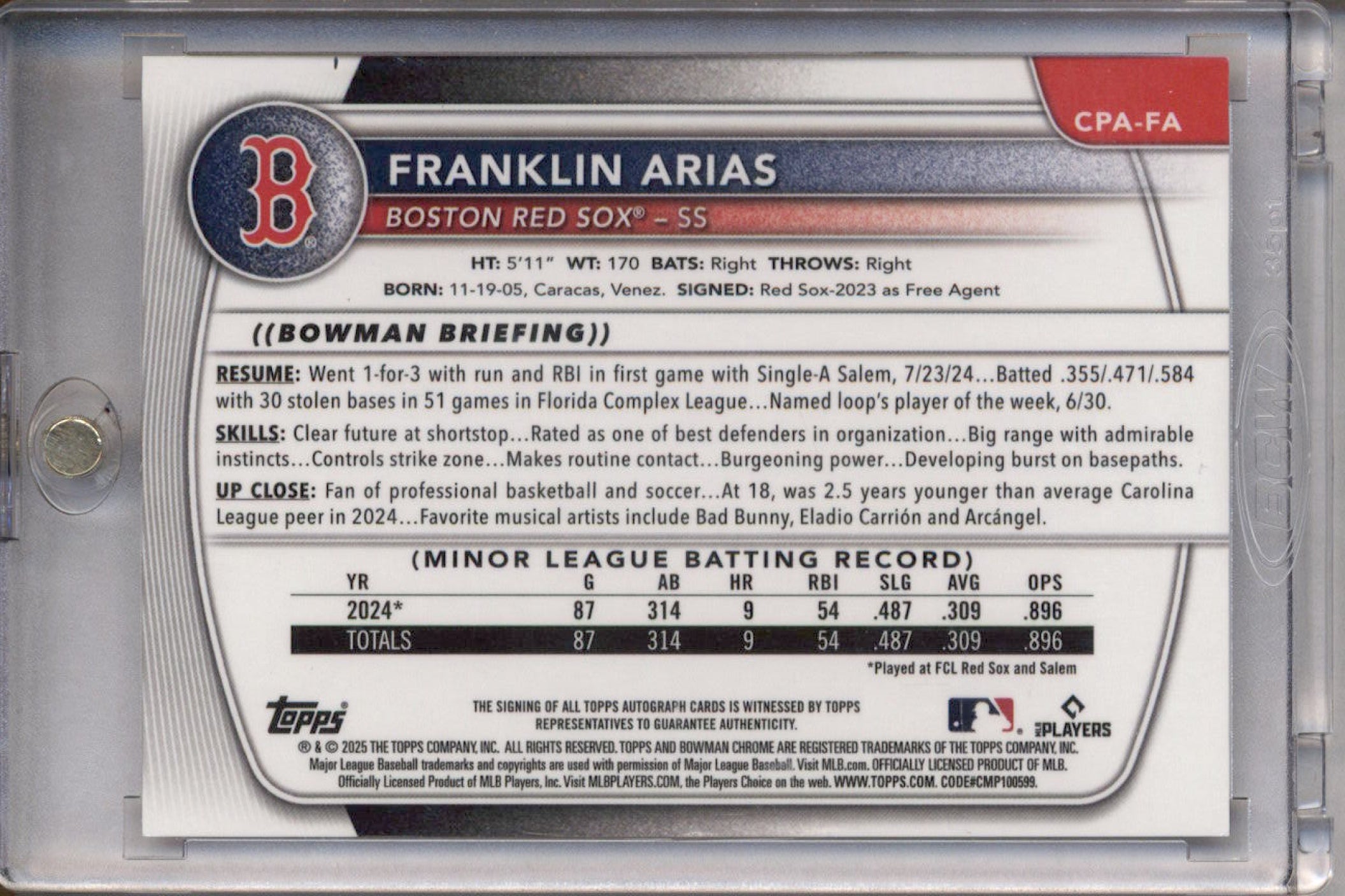 2025 Bowman Chrome Autographs Orange Wave #CPA-FA Franklin Arias RC Auto /25