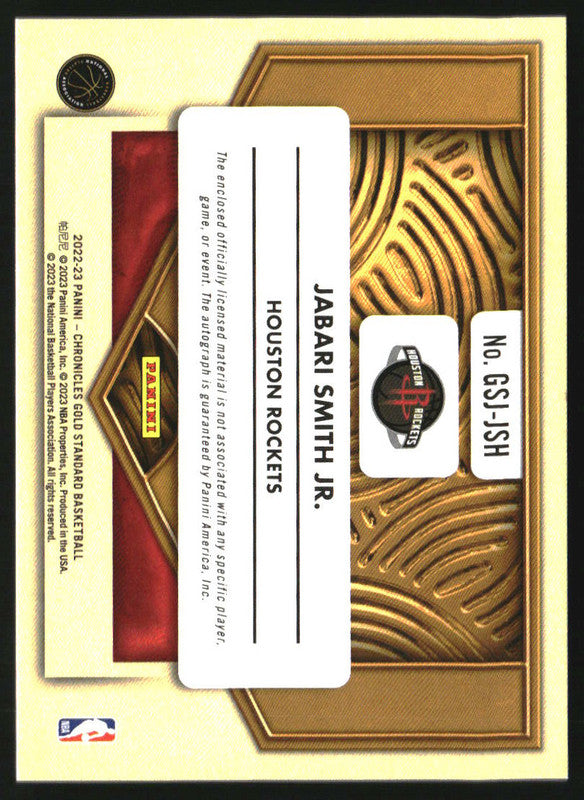 2022 Chronicles Gold Standard Rookie Jersey Asia Jade Jabari Smith Jr. RC Auto