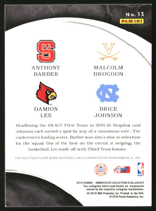 2016 Immaculate Collection Collegiate Quad Prime Barber Brogdon Lee Johnson /25