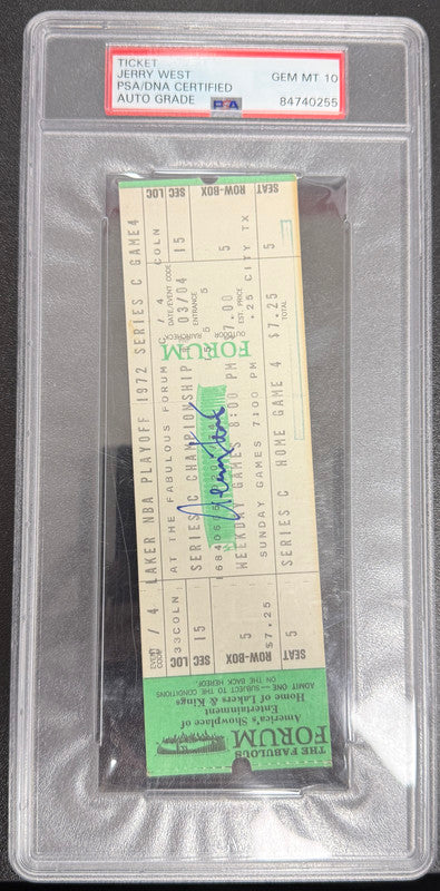 The Fabulous Forum Game Ticket Autograph Jerry West DNA Certified Auto PSA 10