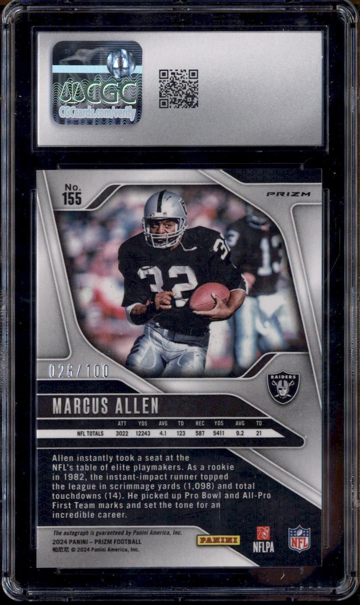 2024 Panini Prizm Autographs Choice Prizm #155 Marcus Allen Auto /100 CGC 10