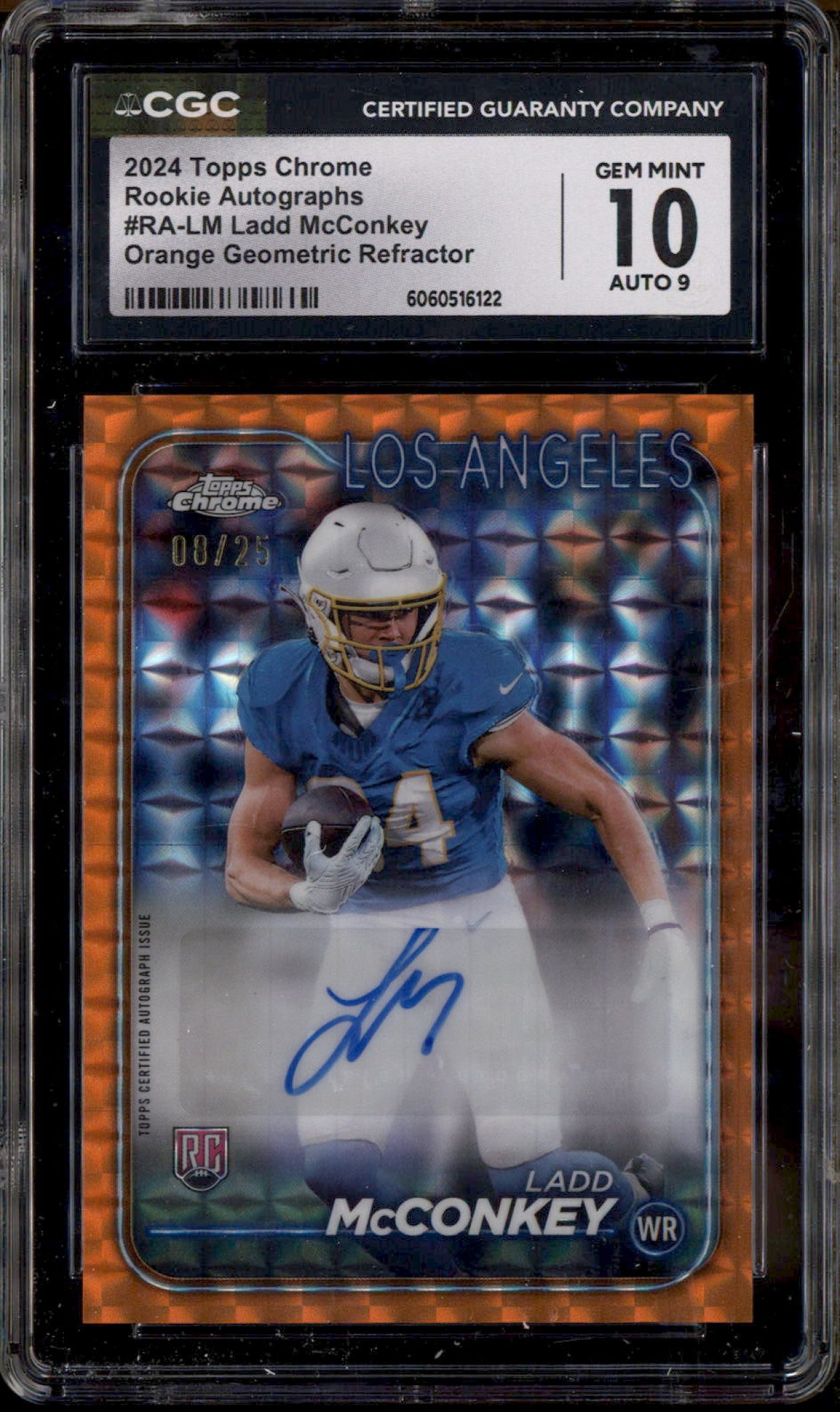 2024 Topps Chrome Rookie Orange Geometric #RALM Ladd McConkey RC Auto /25 CGC 10