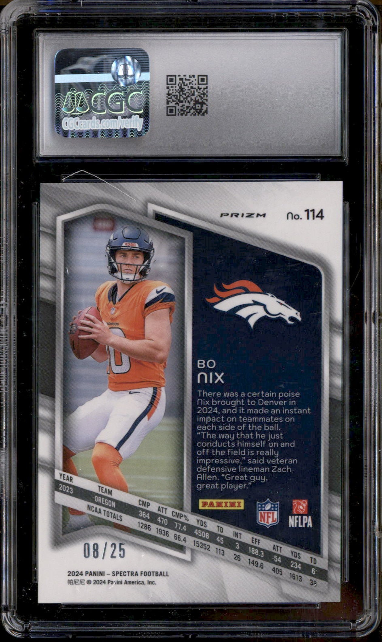 2024 Panini Spectra Rookies Meta #114 Bo Nix RC /25 CGC 10