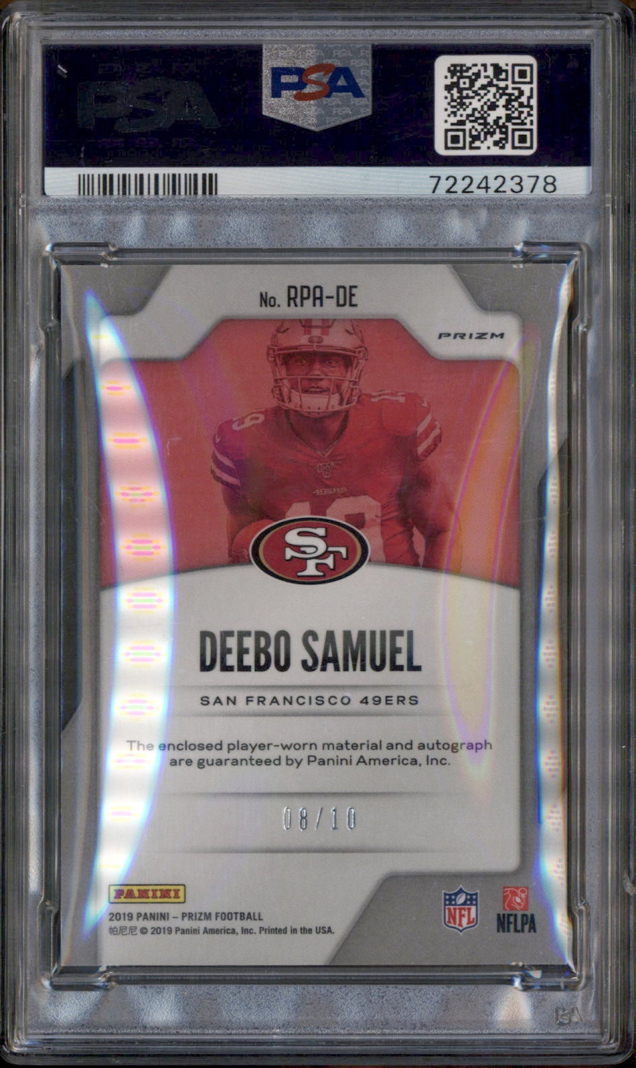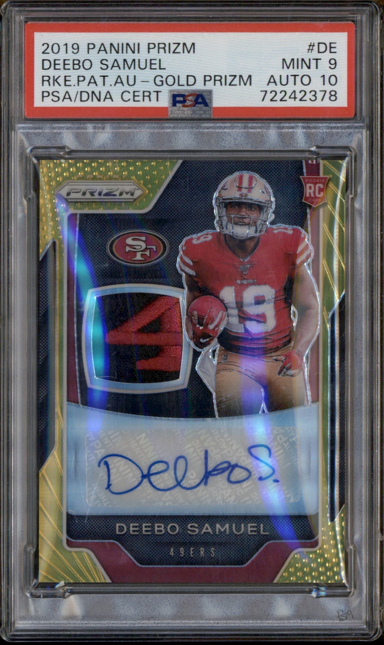 2019 Panini Prizm Rookie Patch Prizm Gold #RPA-DE Deebo Samuel RC Auto /10 PSA 9