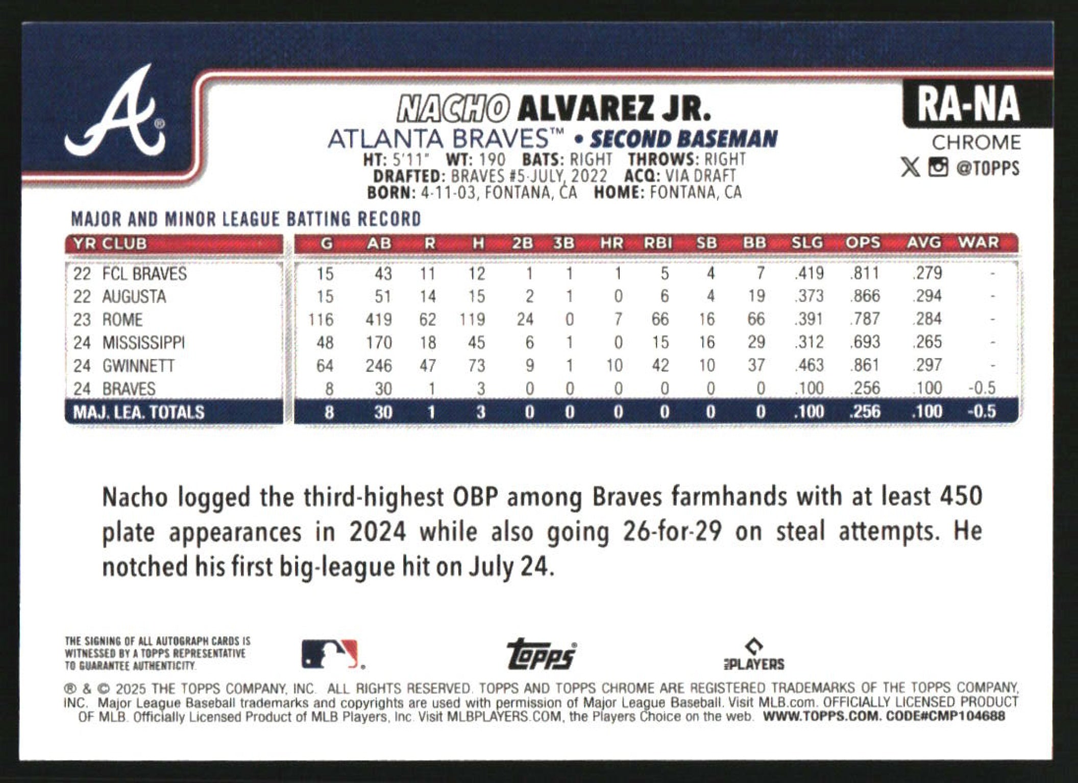 2025 Topps Chrome Rookie Purple Refractor #RA-NA Nacho Alvarez Jr. RC Auto /250