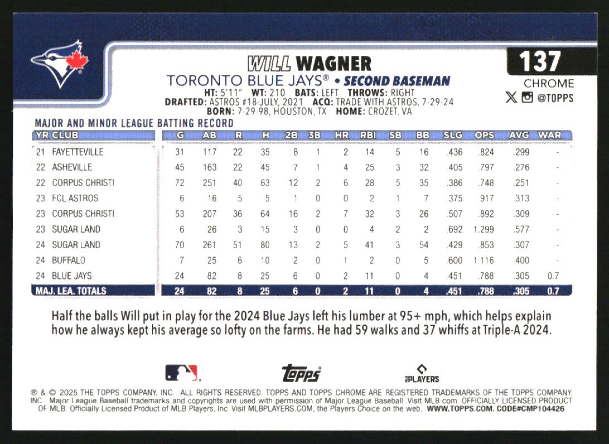 2025 Topps Chrome Red Refractor #137 Will Wagner RC /5