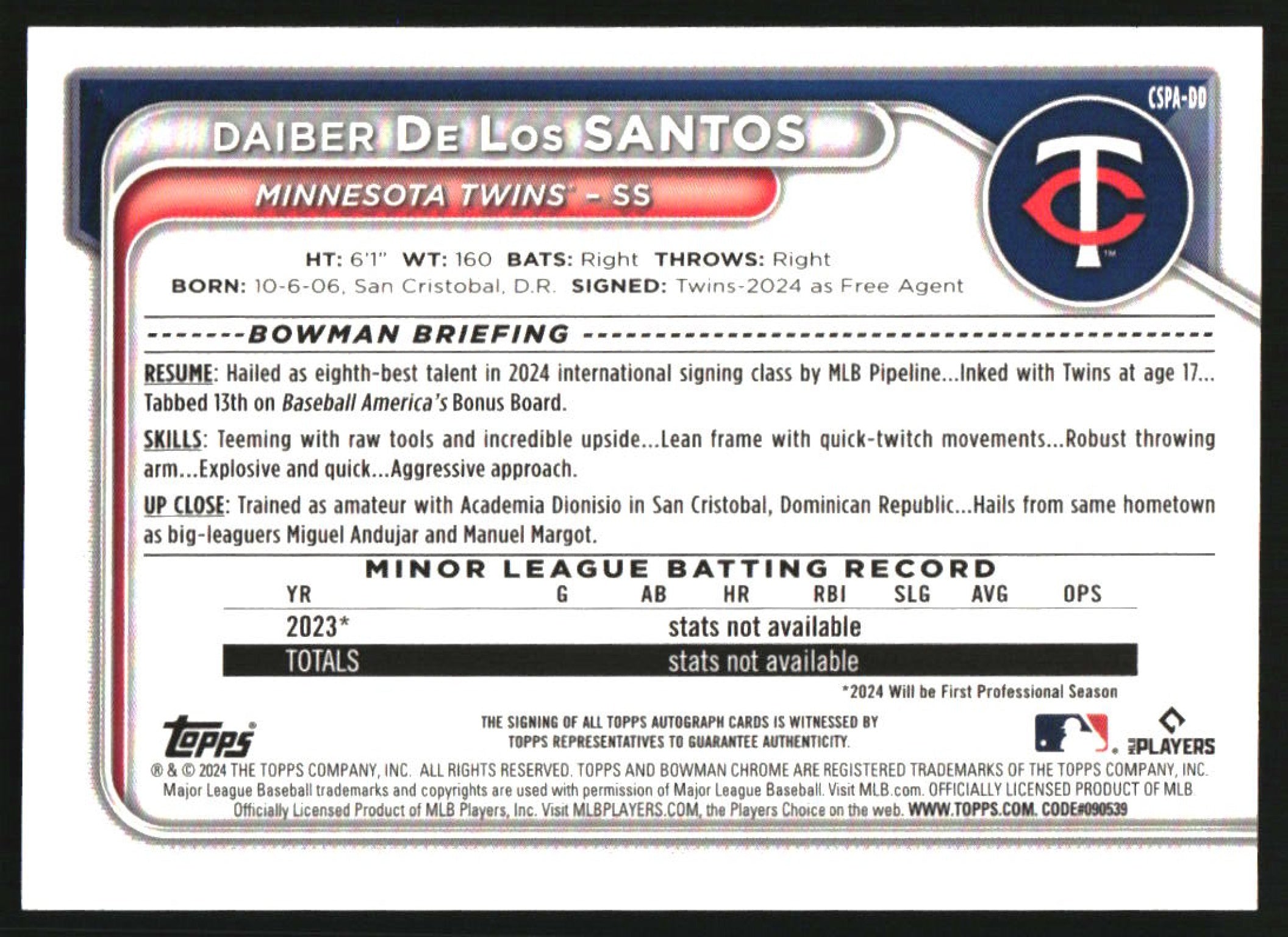2024 Bowman Chrome Sapphire Prospect #CSPA-DD Daiber De Los Santos Auto /199