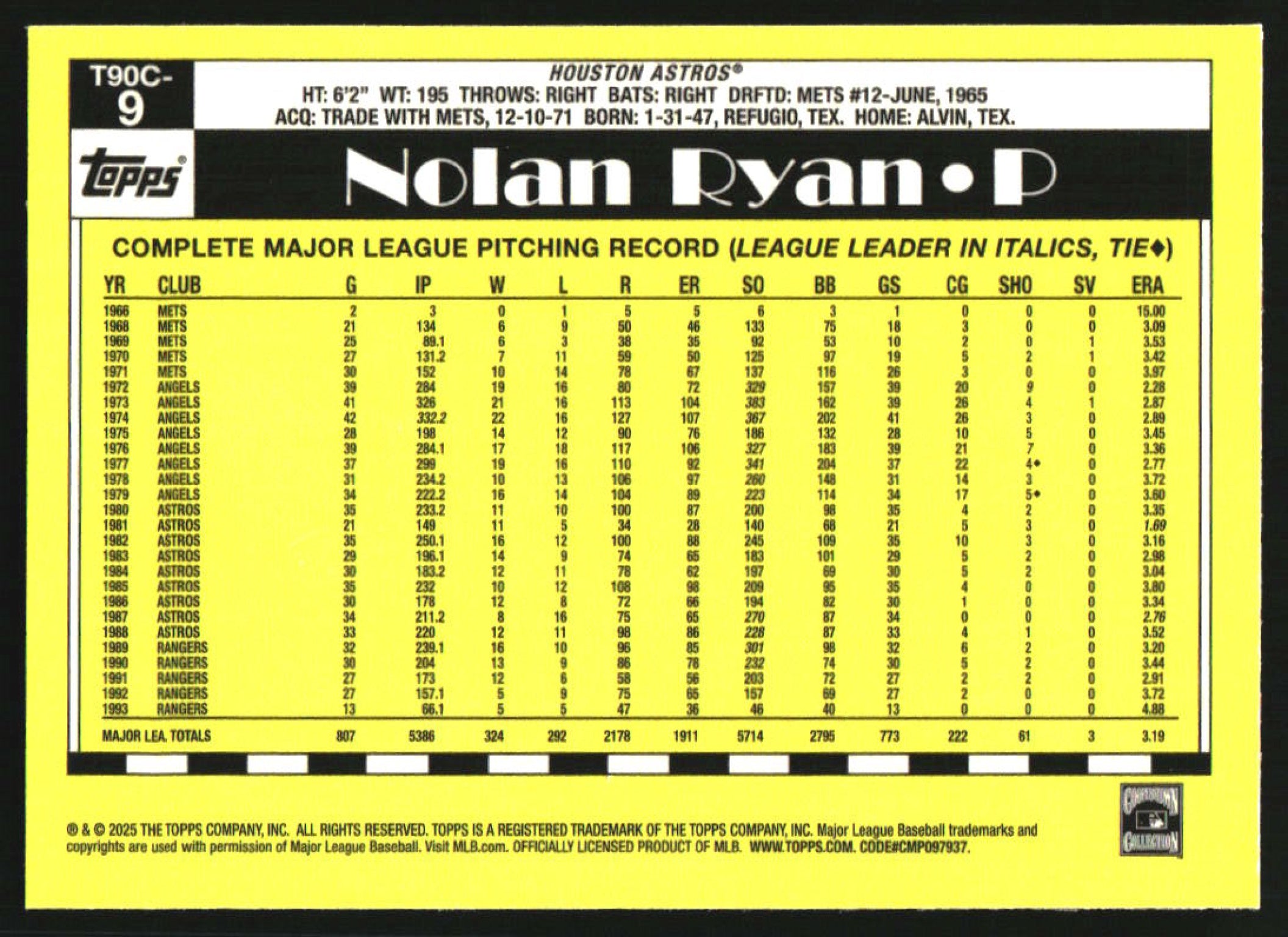 2025 Topps 1990 Baseball Chrome Silver Pack Blue Refractor Nolan Ryan /150