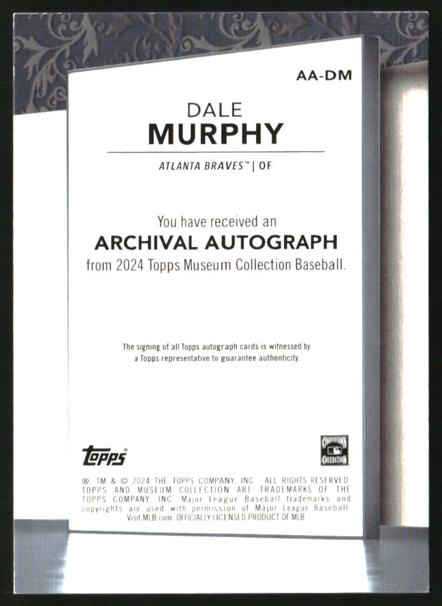 2024 Topps Museum Collection Archival Autograph Gold #AA-DM Dale Murphy Auto /25