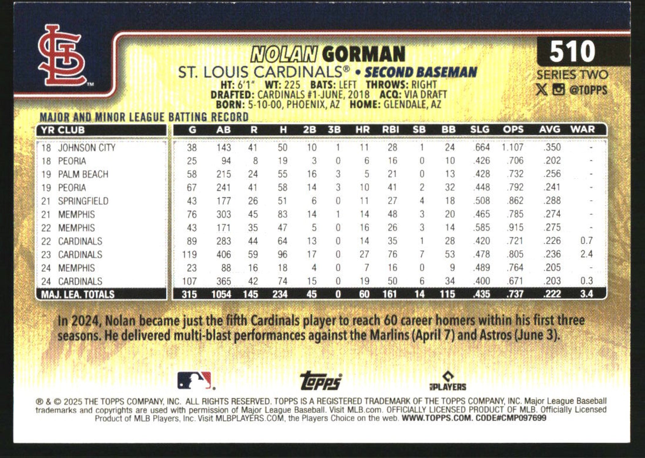 2025 Topps Golden Mirror Variation SSP #510 Nolan Gorman