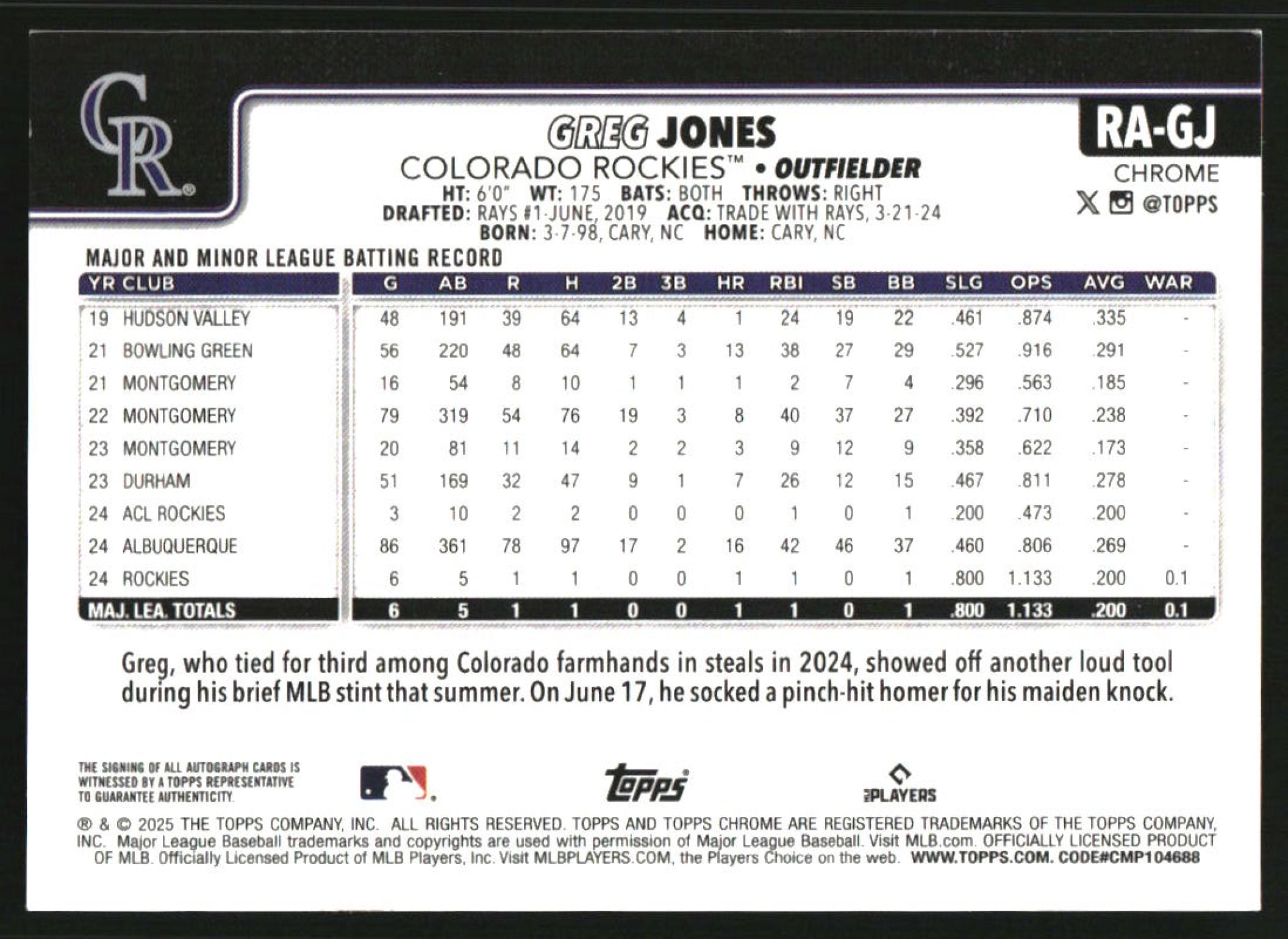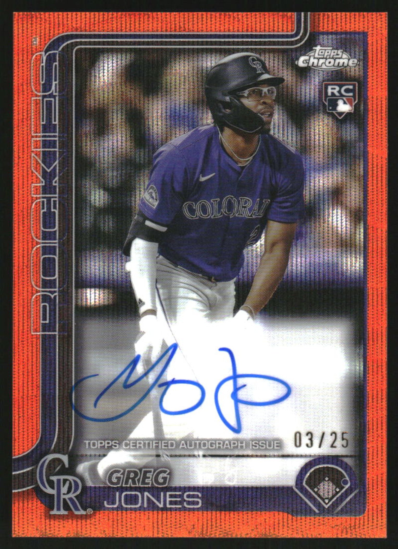 2025 Topps Chrome Rookie Autographs Orange Wave #RA-GJ Greg Jones RC Auto /25