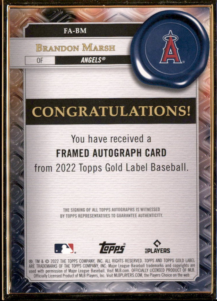 2022 Topps Gold Label Framed Autographs #FA-BM Brandon Marsh RC Auto