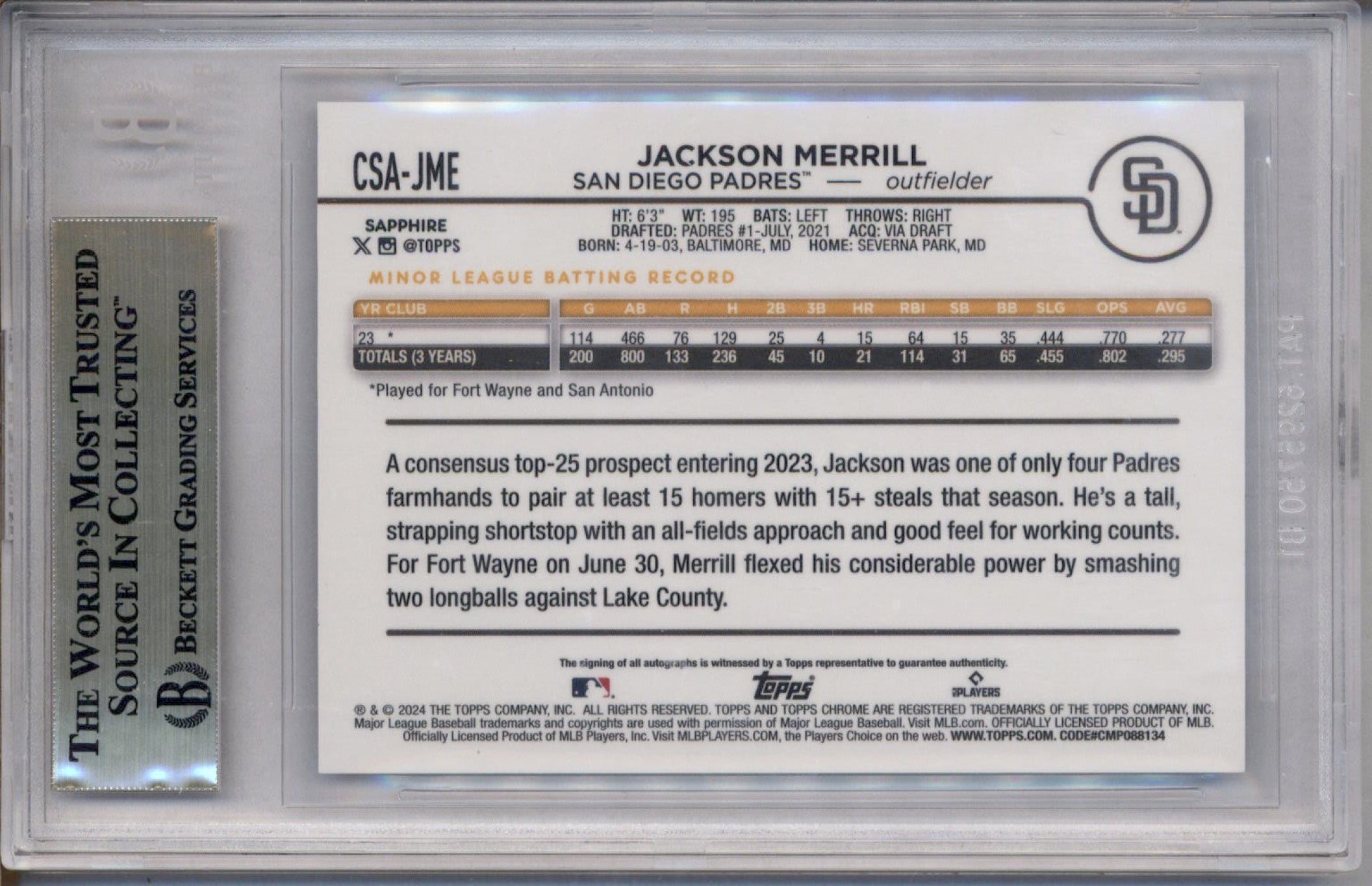 2024 Topps Chrome Sapphire Chrome #CSA-JME Jackson Merrill RC Auto /199 BGS 9.5
